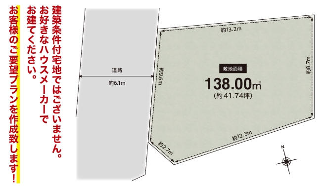 お好きなハウスメーカーでお建てください。 |