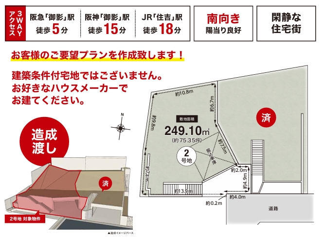 建築条件付宅地ではございません。お好きなハウスメーカーでお建てください。
